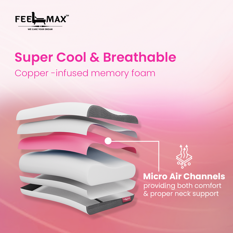 Designed to follow natural neck curvature. Provides stable support for proper alignment. Reduces tension during rest.
